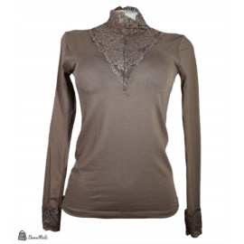 كنزة بدي كم دانتيل بني قطن ليكرا..
