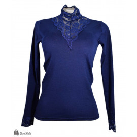 كنزة بدي كم دانتيل كحلي قطن ليكرا..