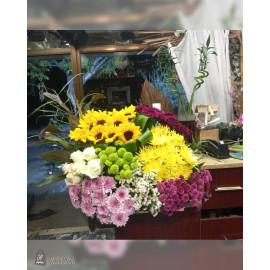 باقة مشكلة ألوان مع غلاف أسود و خضار و جيبسوفيل مناسبة لأعياد الميلاد و يمكن التعديل حسب رغبة الزبون للتعديل تواصلو معنا..